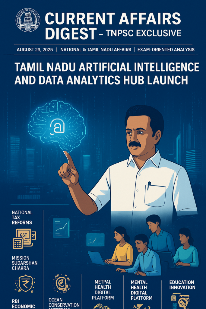- Chief Minister M.K. Stalin inaugurates Tamil Nadu AI and Data Analytics Hub in Chennai with ₹2,500 crore investment