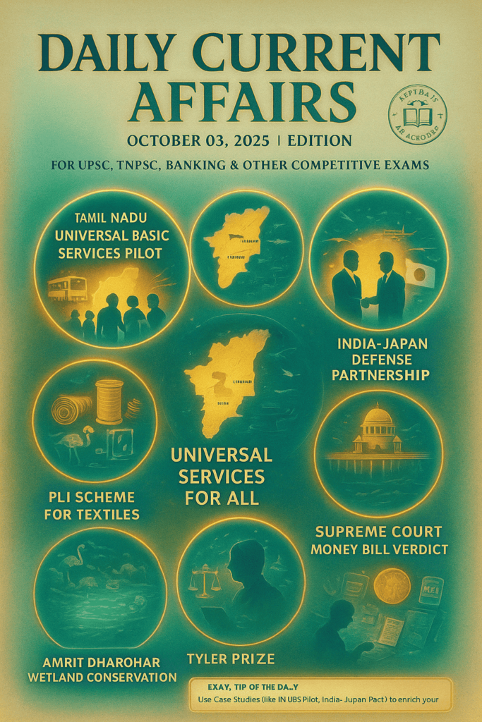 GROUP 1 MAINS (15 Marks): “Universal Basic Services represent an alternative welfare approach to cash transfers. Critically examine Tamil Nadu’s UBS pilot in the context of India’s welfare architecture. Discuss the merits and challenges of universalism versus targeted welfare delivery.”